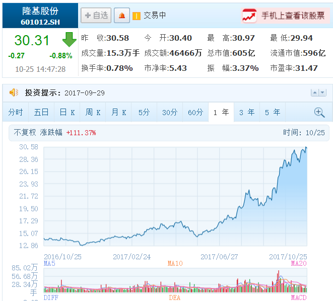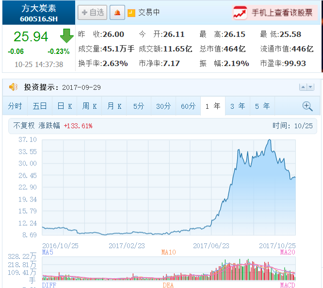 按照方向一,2017年我们投资并赚了钱的标的是方大炭素和隆基股份 :